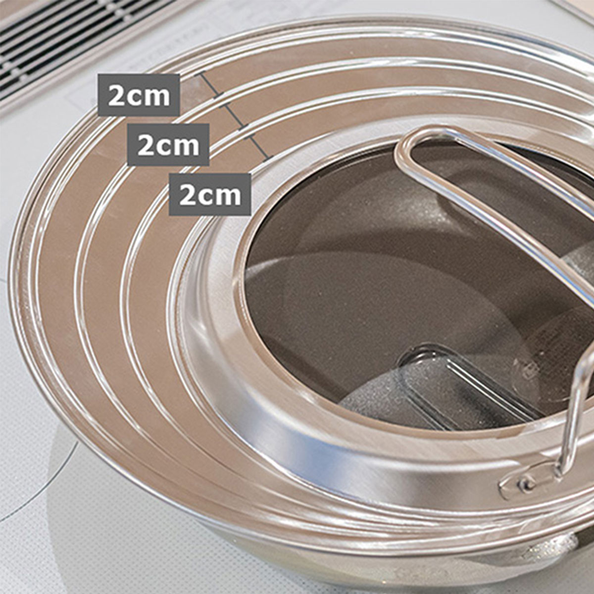 自立するので、置き場所を取りません 自立式のハンドルです。作業台の上に立てて置くことができるので、調理中でも邪魔になりません。 ガラス窓付きで、中の様子を確認できます フタの中央に強化ガラスの窓があり、中の食材の様子が見えるので、フタを開ける手間が無くなります。 収納場所もすっきり 直径18㎝、20㎝、22㎝のフライパンや鍋でご使用いただけるよう、2㎝間隔で溝が施されています。
