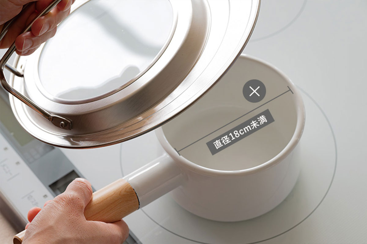 18㎝に満たないサイズのフライパンや鍋にはご使用いただけませんので、ご注意ください。