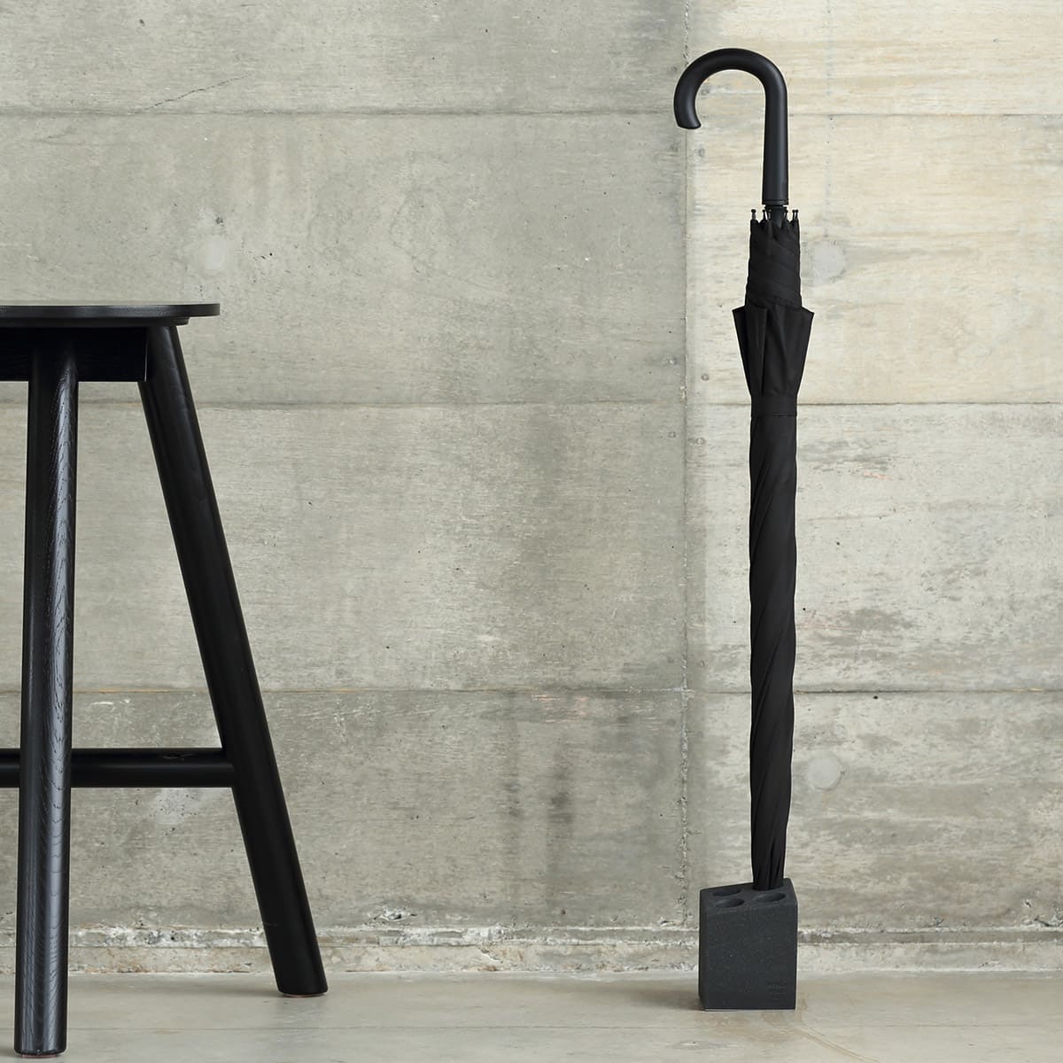 コンパクトで省スペース 使いたい時だけ出して使えるコンパクトサイズです。 小さなキューブ型で、狭い玄関でも場所を取りません。背が低いので、普段はシューズラックや靴箱の中に収納しておくことができて、必要な時だけ出して使用できます。雨の日や来客時だけサッと出して使えるので、玄関を常に広々と、気持ちよく保てます。 小さくても抜群の安定感 シューズラックに収納できるコンパクトサイズですが、 適度な重さがあるので、倒れにくい安定感があって、傘をまっすぐ収納して使えます。 見た目の小ささに関わらず、長傘を最大4本までしっかり立てて収納できるので、一人暮らしの方や来客用としても十分な収納力です。 取り出しやすさを配慮した傾斜 上部には傾斜が付いているので、コーナーに設置しても傘を出し入れしやすいデザインになっています。 環境に配慮したサスティナブルな製法 製造時に二酸化炭素の排出がゼロのカーボンニュートラル製法で作られたPOLYWARE(ポリウェア)です。2液性で固形化するポリエステル樹脂と捨てられるはずの炭酸カルシウムや天然石の粉を混ぜて作っている、環境に配慮したサスティナブルな製品です。 シンプルでモダンなデザイン 出しっぱなしでも生活感が出ず、おしゃれなインテリアの一部のようになじみます。 今まで傘立てを置くことを諦めていた狭い玄関や、マンションのスペースにもすっきりと収まる傘立てです。