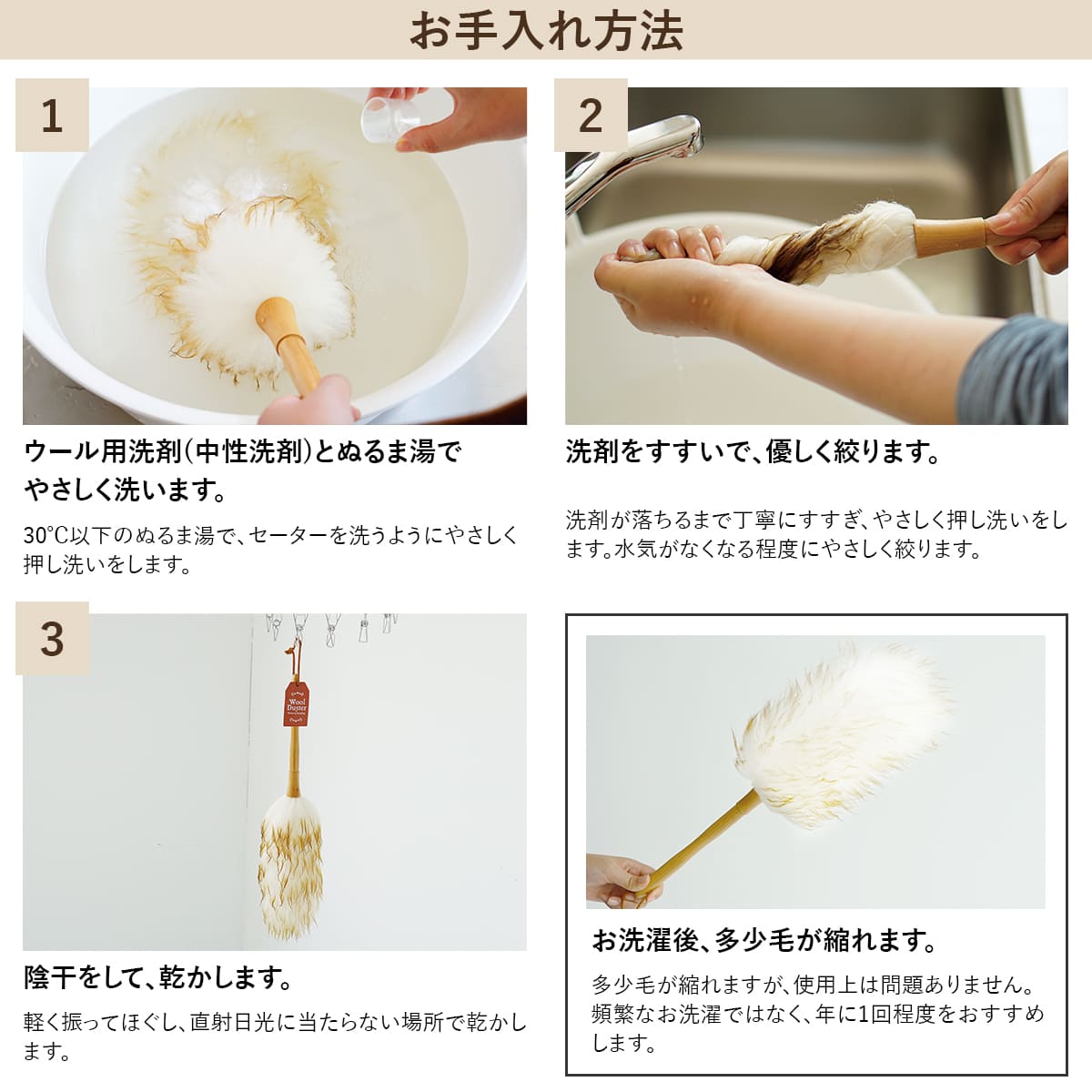 広い場所も楽に届く、頼れるサイズのたっぷりとしたボリューム羊毛ダスター