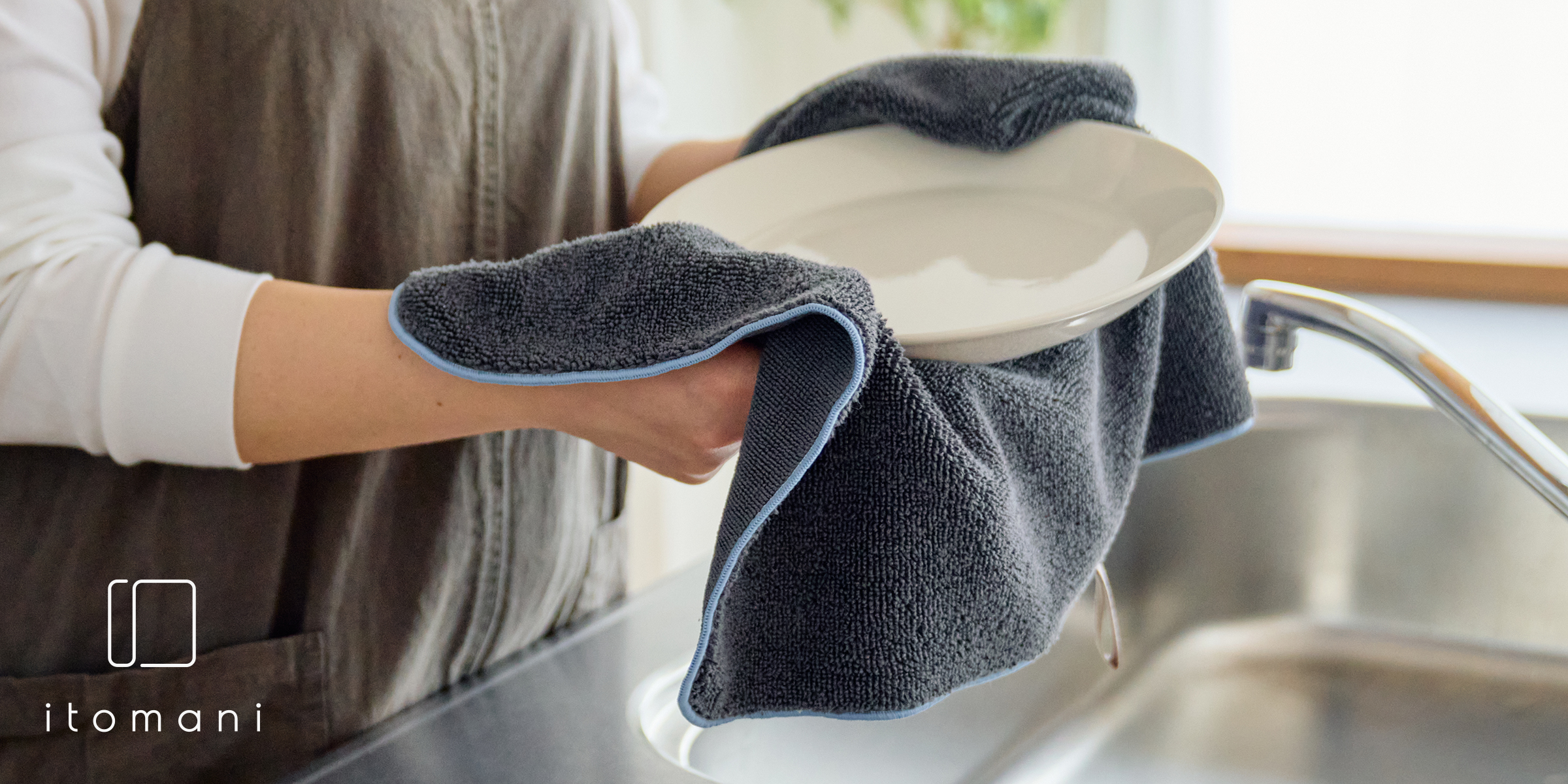 一般的な綿100%のパイルタオルと比べると約6倍の吸水性があり、最大吸水時は約11倍という驚きの吸水力があるクロス。お皿を拭くのはもちろん、普段のお掃除にも取り入れたいアイテムです。