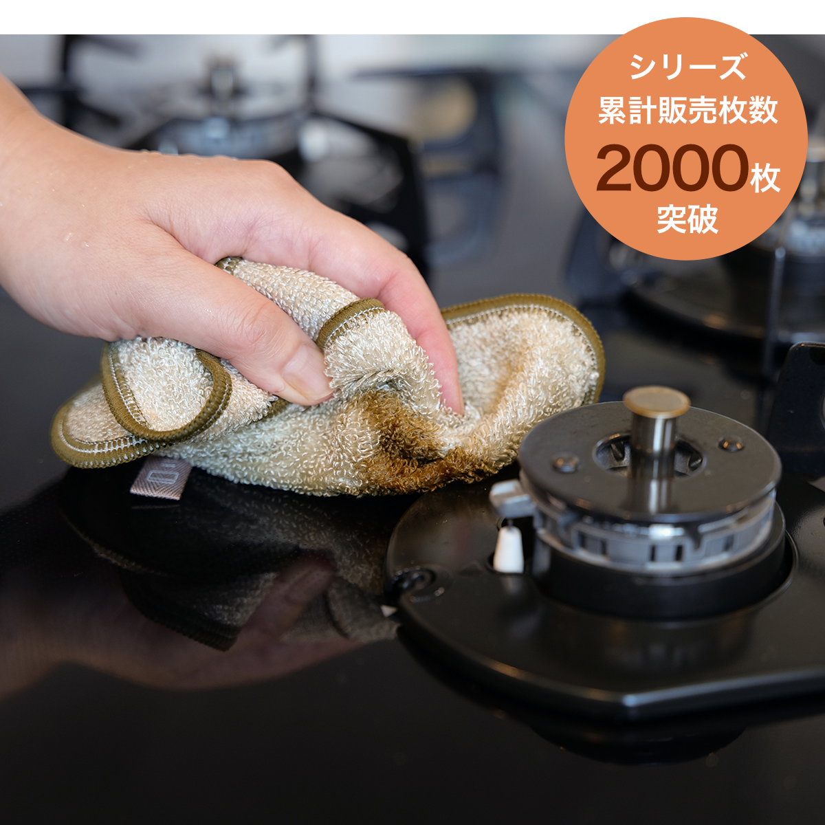 水で濡らして拭くだけで洗剤を使わなくても油汚れを落としてくれます。