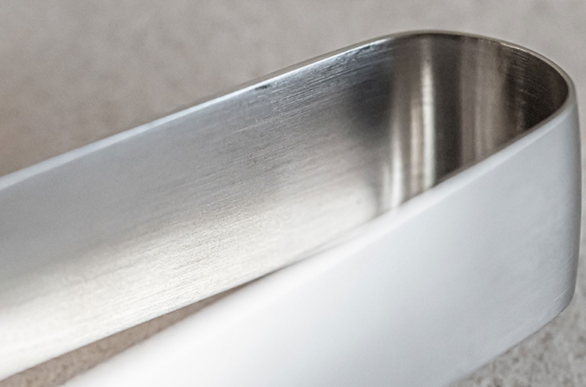 卓上でも場所を取らず、使いやすいサイズ 大きすぎず、開き過ぎないので、卓上でも場所を取りません。中鉢や小さめの保存容器の中から料理を取り分けるのにちょうどいい大きさです。つかむ面積が広いので、柔らかい食材もつぶさずつかめます。 細かい食材も残さずつかめます 先端がぴったり合うので、春雨サラダなどの細かい残り食材もしっかりつかめます。トングの向きを変えて使うことで、多めの量を取り分けたり、細かな食材をつかんだりと、使い分けができます。 先端が卓上につきません 先端に少しカーブがついているので、そのまま卓上に置いても先端が浮き、清潔に保てます。 ※ご購入の前に知っていただきたいこと 細かなキズや凹凸、曲げ跡について 製造時に機械や金型と触れたり研磨したりすることで発生する細かなキズや凹凸、ステンレスを曲げる際についた筋などがみられる場合がございます。製造工程上のものですので、ご了承ください。 ヘアライン 「ヘアライン」と呼ばれる細かなキズのような筋がありますが、製品仕様です。