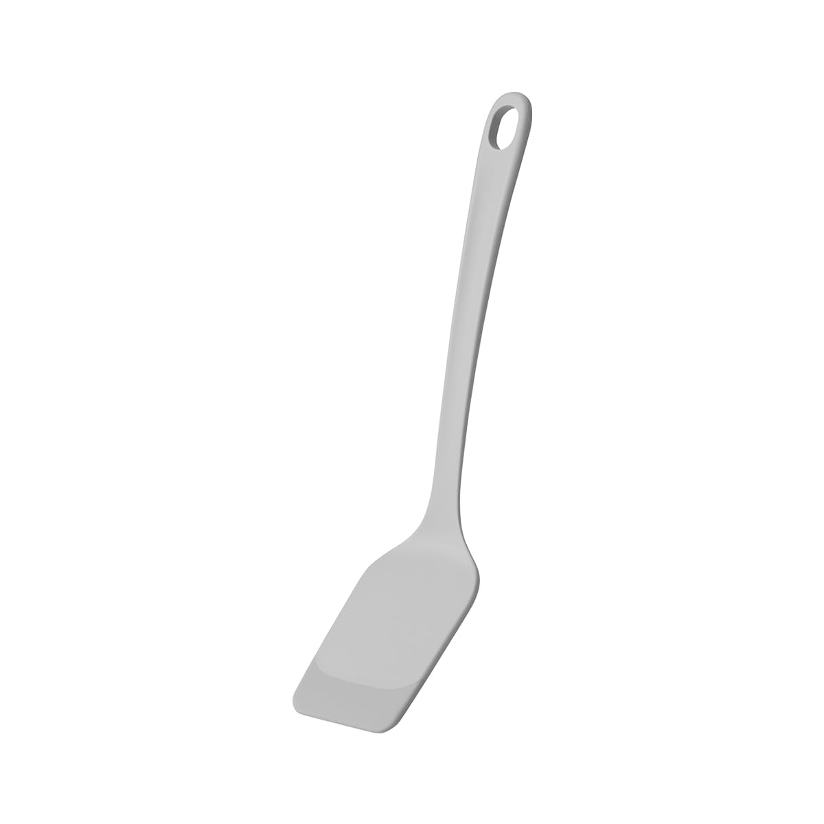 先端がしなって、どんな角度からでもスムーズに差し込めるターナーです。コンパクトな幅でピンポイントに食材を狙って持ち上げられます。 狙った食材にスッと入る、しなやかターナー 「ハンバーグや餃子の下にターナーが入らない」「ひっくり返すときに崩れてしまう」――そんな調理ストレスを解消してくれるターナーです。先端のシリコーンがしなって、小ぶりや深めのフライパンでも角度を選ばず差し込めます。 崩さず持ち上げる、ちょうどいい幅と強さ コンパクトな幅で、狙った食材を崩さず持ち上げられます。重たいハンバーグ等を持ち上げる際もしなりません。 角度を付けたときも寝かせたときも扱いやすく、重い食材でも持ち上げやすいサイズです。 デリケートな食材もやさしくサポート 弾力性のあるシリコーンゴムの先端は、適度なしなりがあります。この柔軟性がフライパンの面にしっかり密着するので、ハンバーグやオムレツといったデリケートな食材を受け止めて形を崩さずに優しく持ち上げ、スムーズに返すことを可能にします。 小ぶりや深めなフライパンでも角度を選ばず差し込めます。 フッ素加工のフライパンも傷つけない安心素材 ナイロンとシリコンで出来ているので、フッ素加工の鍋やフライパンを傷つけずに安心です。食洗機にも対応しているので、毎日のお手入れも簡単です。